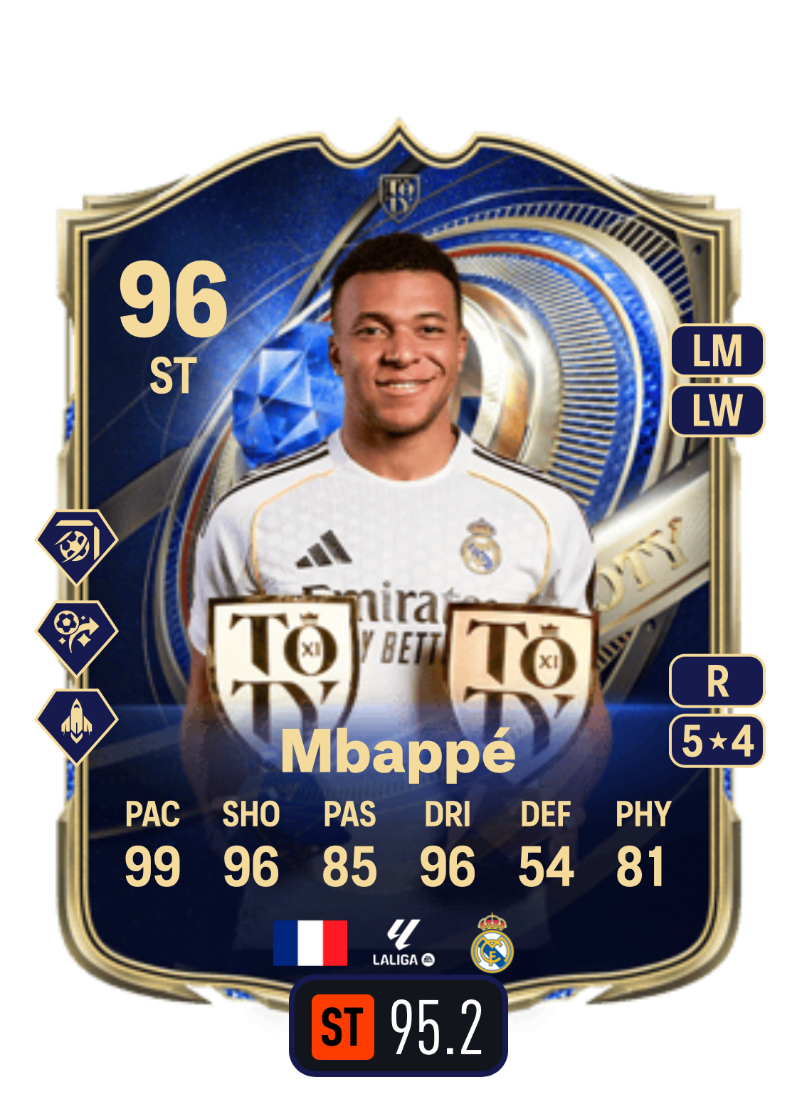 1 Kylian Mbappé (TOTY) Komplette Offensivkarte mit mehreren Gold-PlayStyles
